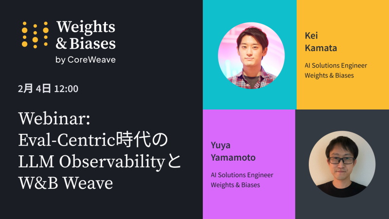 AI Agentは作れる時代になった。しかし、本番で“使われ続ける”Agentはまだ少ない。本ウェビナーでは、Eval-Centricという考え方を軸に、LLM Observabilityが本番運用で果たす役割と、進化したW&B Weaveを通じて「Agentを育て、守る」ための実践的アプローチを解説・デモします。