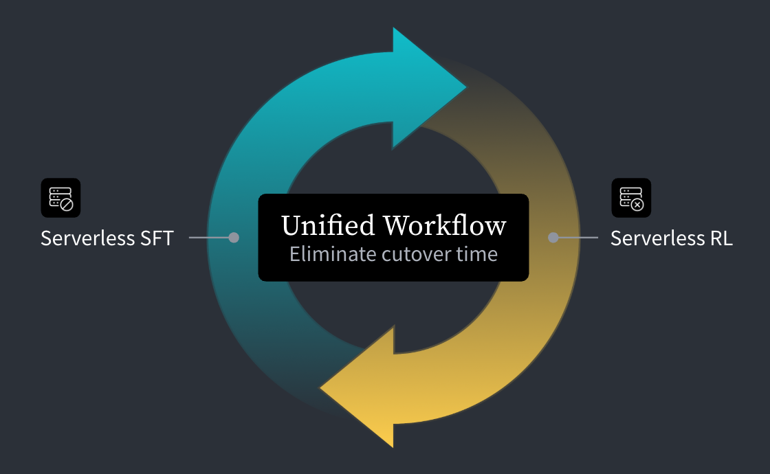 Switching between SFT and RL often means moving model artifacts between systems, downloading checkpoints from one service and loading them into another. That handoff slows iteration and can delay time to market. Serverless SFT lets you teach LLMs specific tasks alongside RL post-training in a unified workflow. Eliminate SFT-RL cutover time and accelerate iteration speed.